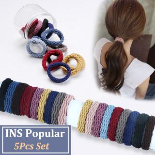 Set 5 Dây Cột Tóc Co Giãn Kiểu Dáng Đơn Giản Thời Trang Hàn Quốc Cho Nữ