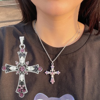 Vòng cổ Mặt Thánh Giá Đính Đá Zircon Màu Tím Phong Cách Gothic Punk Cổ Điển Thời Trang Cho Nam Và Nữ