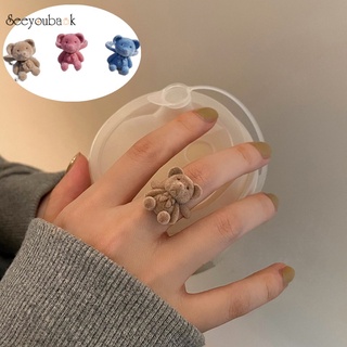 Nhẫn hở hình gấu Teddy bằng nhung nhiều màu dễ thương tùy chọn cho nữ