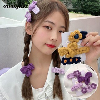 Set 4 Kẹp Tóc Đan Len Hình Hoa Thời Trang Hàn Quốc Cho Bé Gái