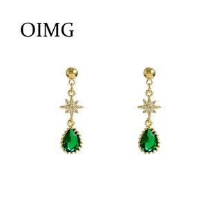 OIMG Bông Tai Đính Ngọc Lục Bảo Nhân Tạo Hình Vuông Phong Cách Retro