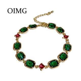 Vòng tay OIMG đính đá ngọc lục bảo hợp thời trang cho nữ