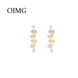 OIMG Bông Tai Mạ Bạc 925 Hình Hoa Phối Dây Tua Rua Thời Trang Hàn Quốc