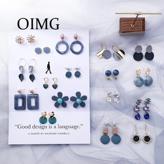 OIMG Bông tai màu xanh xám hợp kim của phụ nữ
