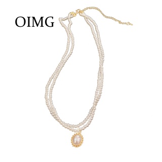 OIMG vòng cổ Hai Lớp Đính Ngọc Trai Nhân Tạo Hình Oval Phong Cách Retro