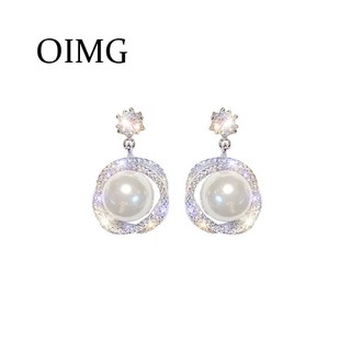 OIMG Bông Tai Mạ Bạc 925 Đính Ngọc Trai Phong Cách Retro