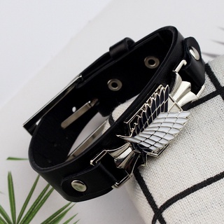 1 vòng tay da gắn nhẫn khắc hình Konoha phong cách Punk Nhật Bản