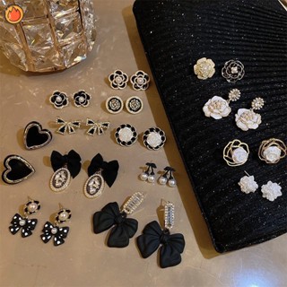 Bông Tai Mạ Bạc 925 Hình Hoa Trà Đen Đính Ngọc Trai Cao Cấp Phong Cách Pháp Cổ Điển Cho Nữ