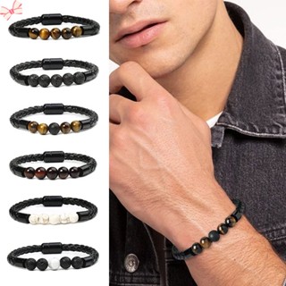 Vòng Tay Da Đính Hạt Đá Phong Cách Âu Mỹ Cho Nam