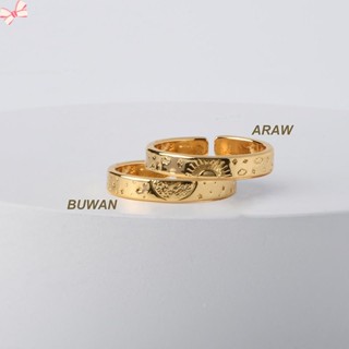 Nhẫn Cưới Mạ Vàng 18K In Hình Mặt Trời Và Mặt Trăng