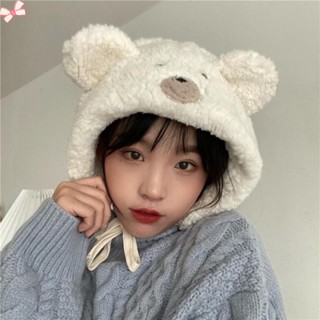 Mũ lông dày giữ ấm tai kiểu hoạt hình gấu đáng yêu cho nữ ruiyan