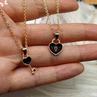 Set 2 Vòng cổ Mặt Hình Ổ Khóa / Trái Tim Đơn Giản Thời Trang Cho Cặp Đôi