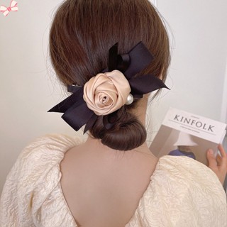 Kẹp Tóc Đuôi Ngựa Bằng Satin Đính Hoa Hồng Handmade Chất Lượng Cao
