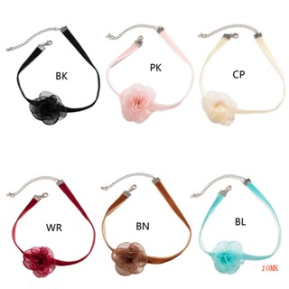 Vòng Cổ Choker Vải Lưới Phối Hoa Hồng Lãng Mạn 5 Màu Lựa Chọn