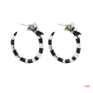 Bông Tai Hình Đầu Rồng Màu Bạc Họa Tiết Kẻ Sọc / Đầu Rắn Thời Trang Dự Tiệc