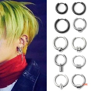 Set 10 Bông Tai Dạng Vòng Bằng Thép Không Gỉ Phong Cách Hip Hop Cho Nam Và Nữ