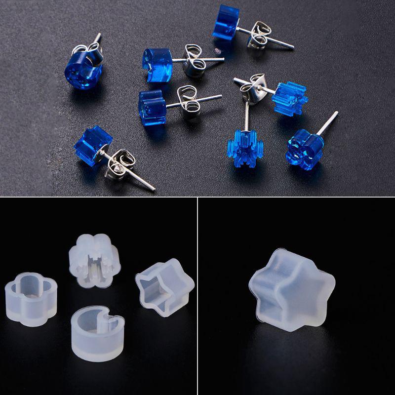 Bộ 2 khuôn silicon làm bông tai hình bông hoa/ngôi sao/mặt trăng/bông tuyết DIY