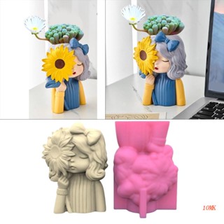 Khuôn Silicone Làm Chậu Hoa Xi Măng Hình Cô Gái / Hoa Hướng Dương DIY