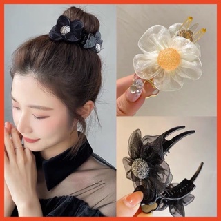 Kẹp Tóc Càng Cua Phối Ren Màu Trắng Đen Thời Trang Mùa Hè Cho Nữ