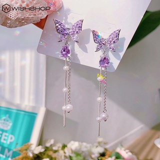 1 Đôi Bông Tai Hình Bướm Đính Đá Pha Lê Lấp Lánh Thời Trang Hàn Quốc Cho Nữ