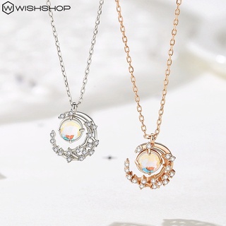 Vòng cổ kim loại mặt hình mặt trăng ngôi sao đính đá zircon đơn giản sáng tạo thời trang cho nữ