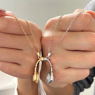 1 Cặp Vòng cổ Kim Loại Mặt Hình Tai Nghe Độc Đáo Thời Trang Unisex