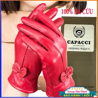 Găng tay, bao tay da mùa đông nam nữ lót nỉ lông dày dặn siêu ấm capacci da cừu