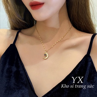 Dây chuyền titan không gỉ hình mặt trăng đính đá pha lê trang sức titan mẫu mới 2021