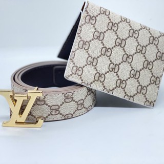 ( Combo ) Dây lưng họa tiết G mặt vll - vi da - Dây nịt nam cao cấp và bóp da new 2022