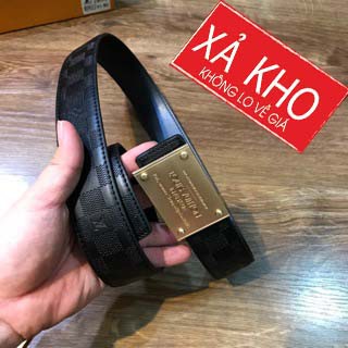 Dây nịt VL đẳng cấp Doanh Nhân kẻ caro đen, mặt thép đen, hàng hiệu đẹp