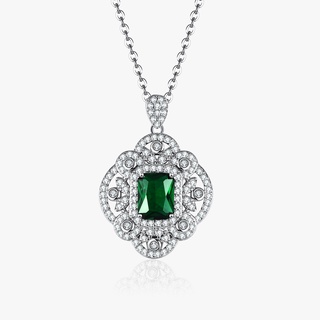 Vòng cổ Mạ Bạc 925 Đính Ngọc Lục Bảo Hình Vuông Thời Trang Cho Nữ