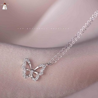 Vòng cổ Mạ Bạc Mặt Hình Bướm Rỗng Đính Đá Zircon Sang Trọng Cho Nam Nữ