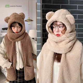 【YKN】Mũ Giữ Ấm Tai Bằng Nhung Lông Thiết Kế Hình Tai Gấu Dễ Thương