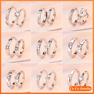 Set 2 Nhẫn Hở Mạ Bạc 925 Đính Hạt Kim Cương Nhân Tạo Phong Cách Hàn Quốc