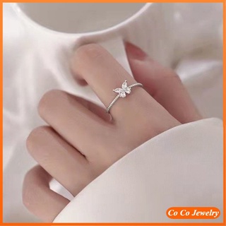 Nhẫn Hở Mạ Bạc 925 Hình Bướm Đính Kim Cương Nhân Tạo Phong Cách Hàn Quốc