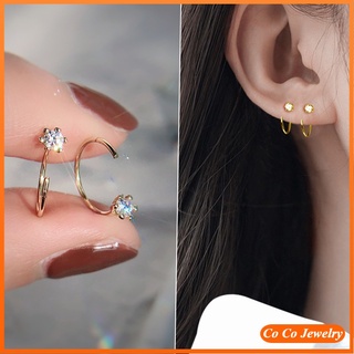 Khuyên tai mạ bạc 925 đính đá zircon phong cách Hàn Quốc thời trang thanh lịch cho nữ