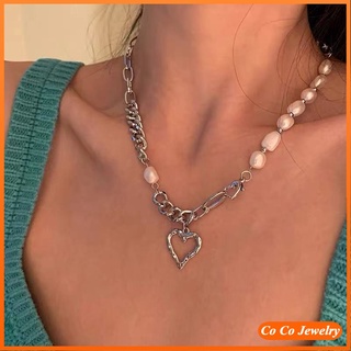 Vòng cổ Mặt Trái Tim Đính Ngọc Trai Tự Nhiên Sang Trọng Thời Trang Mùa Hè Cho Nữ