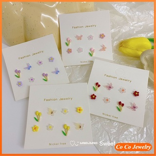 Bộ bông tai mạ bạc 925 hình hoa tulip/ bướm đơn giản thời trang