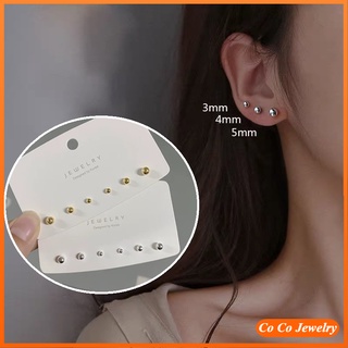 Bộ 6 Khuyên Tai Đinh Tán Màu Vàng Đồng/Bạc Đính Hạt Đơn Giản Dành Cho Bạn Nữ