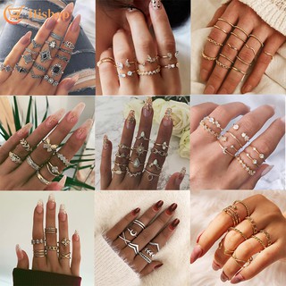 Bộ nhẫn Hishop hình mặt trăng ngôi sao và bướm phong cách Bohemian cổ điển Hàn Quốc cho nữ