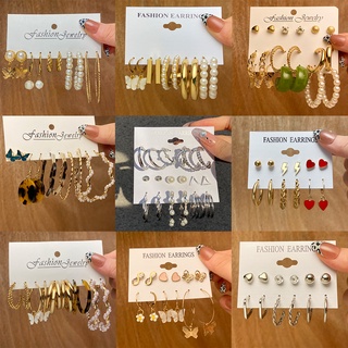 Bộ Khuyên Tai Hishop Màu Vàng/Bạc Đính Pha Lê Thời Trang Retro Hàn Quốc Cho Nữ