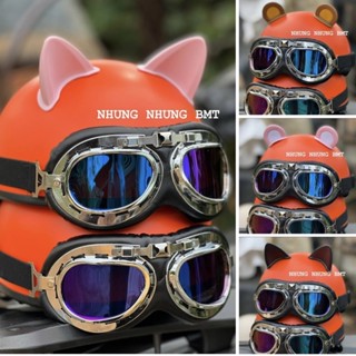 Nón bảo hiểm kính phi công kèm tai mèo tai gấu tai thỏ mắt ếch đáng iu, hàng chất lượng loại 1