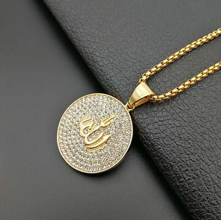 Vòng cổ mặt hình tròn bằng thép không gỉ màu vàng kim họa tiết chữ Allah Ả Rập Hồi giáo