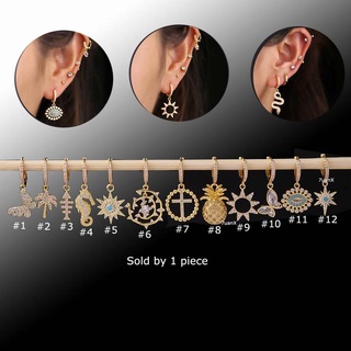 1 Khuyên Tai Tròn Mạ Vàng Đính Đá Zircon Màu Sắc