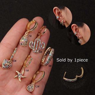 1 Bông Tai Hình Hoa Bướm / Mặt Trời / Trái Tim Đính Đá Zircon Thời Trang