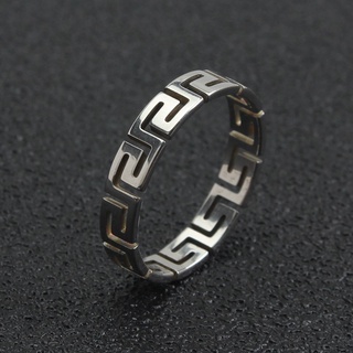 Nhẫn thép titan màu bạc họa tiết hình học đơn giản
