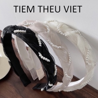 Băng Đô Cài Tóc Ngọc Trai Nhựa 2 Lớp Tiệm Thêu Việt Khí Chất Ngọt Ngào