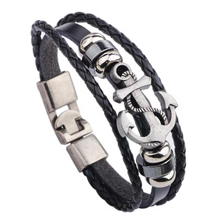 Vòng tay dây da hình mỏ neo độc đáo thời trang cho nam
