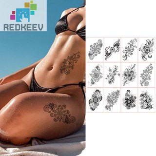 Hình Xăm Dán Họa Tiết Hoa 3D Màu Đen Chống Thấm Nước Dành Cho Cặp Đôi
