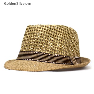 Mũ Rơm Cao Bồi Fedora Jazz Mùa Hè Thoáng Khí Màu Vàng Bạc Phong Cách Anh Quốc Cổ Điển Cho Nam